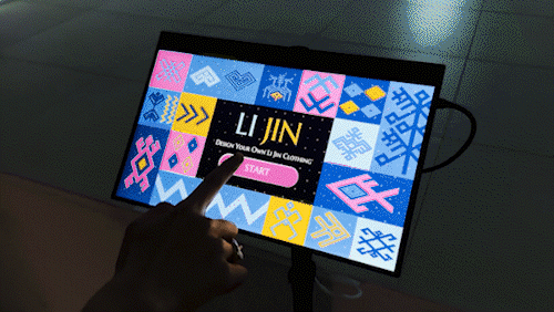 Utilizing 3D projection technology, we merge multiple projection images, two stereoscopic mannequins, and costumes through laser projection devices and software algorithms, creating a dynamic three-dimensional rendition of Li brocade patterns. For active participation in Li Jin creation, viewers can utilize the real-time interactive system and on-site touch screen to select and design patterns, crafting their unique Li Jin costumes. The results are directly showcased on the projection screen, facilitating an immersive interactive experience for Li Jin culture to engage with the world.